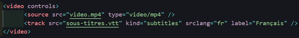 Pour ajouter des sous-titres, il faut utiliser un fichier WebVTT qui est un fichier texte avec l’extension vtt. Ce fichier est ensuite associé à la vidéo.